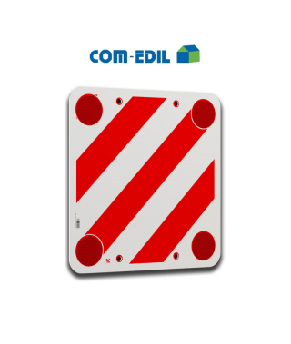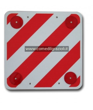 Cartello per carichi sporgenti non omologato, in polipropilene, angoli arrotondati, quattro fori e quattro occhielli ø 2 cm, con catadiottri rivettati.