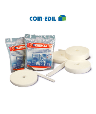 Guarnizione in resina di poliestere espansa. Adesivo spalmato su supporto.