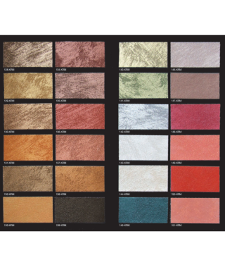 CARATTERISTICHE Finitura per decorazioni di interni metallizzata ad effetto tridimensionale, con particelle cristalline riflettenti.
