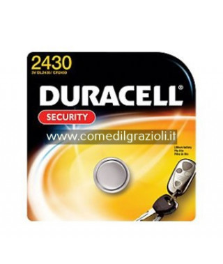 PILE DURACELL ELECTRONICS 2430 3V al litio, mAh 270, peso 4,0 g, diametro 24,5mm, altezza 3,00mm.