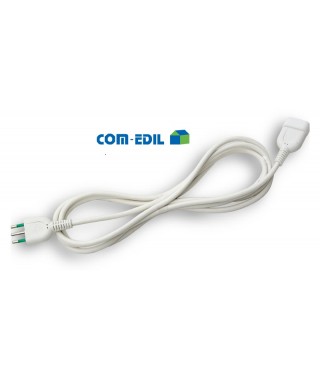 PROLUNGA ELETTRICA CAVO BIANCO DA MT. 8 -FILI 3X1 10A . SPINA PRESSOFUSA CON SPINOTTI ALLINEATI A PETTINE IN OTTONE NICHELATO. SPINA E PRESA 2P+T 10A