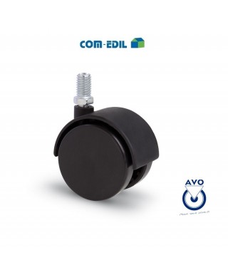 Supporto a cuffia in termoplastico nero. Ruota doppia. L'impiego è consigliato per poltrone, arredamenti, mobili per ufficio, espositori etc.
