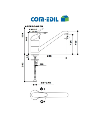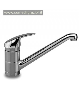 MISCELATORE MONOLEVA INOTTONE CROMATO CON COLLO SNODATO, CORREDATO DI N.2 FLESSIBILI INOX DI COLLEGAMENTO ACQUA E DI VITI DI FISSAGGIO AL LAVELLO.