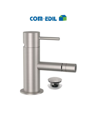 Miscelatore monocomando per bidet, con scarico click-clack con troppo-pieno in acciaio inox.