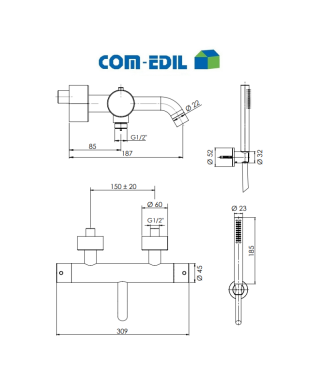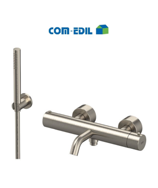 Miscelatore monocomando termostatico vasca esterno in acciaio INOX spazzolato con kit doccia e flessibile cm 150 e doccetta a una funzione.