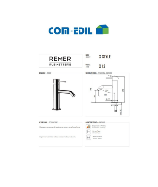 REMER RUBINETTERIE - MISCELATORE RUBINETTO PER LAVABO BAGNO 100% MADE IN ITALY, SERIE X-STYLE
