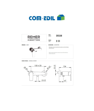 REMER RUBINETTERIE - MISCELATORE 1/2 PER DOCCIA ESTERNA, SERIE DREAM