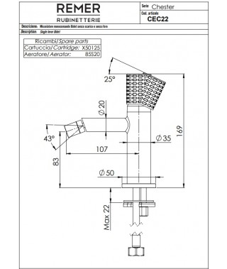 REMER - MISCELATORE MONOCOMANDO PER BIDET, SENZA SCARICO E SENZA FORO POSTERIORE SUL CORPO SERIE CELEBRITY CROMATO