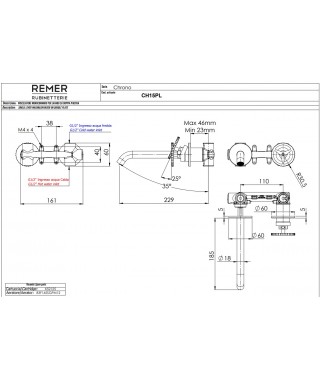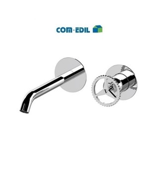 REMER - MISCELATORE MONOCANDO A INCASSO PER LAVABO, SU DUE PIASTRE TONDE SEPARATE, LUNGHEZZA BOCCA 19 CM - SERIE CHRONO COLORE CROMO