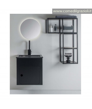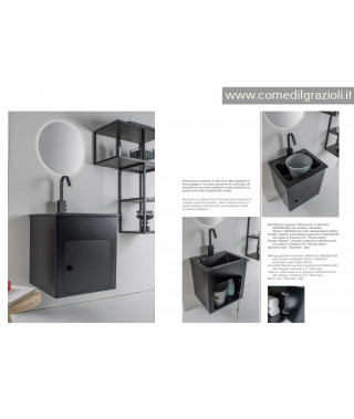 XILON COMPOSIZIONE ALLUMINIUM L.60 CM CON LAVABO IN CERAMICA NERO MATT PROFONDO 20 CM