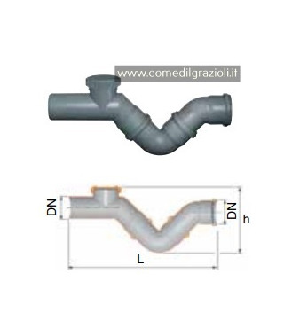 SIFONE PLASTICA PPH D.75 mm IN POLIPROPILENE GRIGIO CON GUARNIZIONE