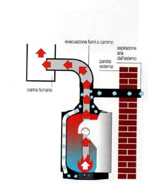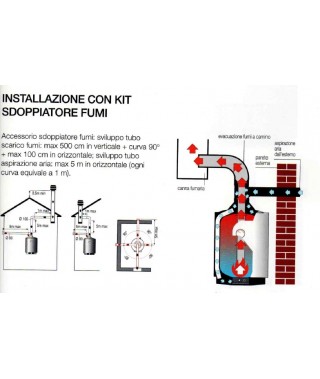 Sviluppo tubo scarico fumo: max 500cm in verticale + curva a 90° + MAX 100 cm in orizzontale ; sviluppo tubo aspirazione aria max 5 mt in orizzontale (ogni curva equivale a 1 mt.)