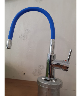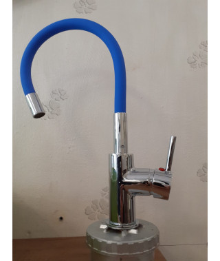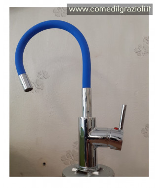 MISCELATORE LAVELLO CUCINA CROMATO CON CANNA IN GOMMA FLESSIBILE COLORATA BLU OLTREMARE