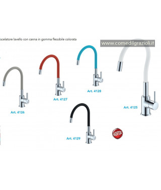 MISCELATORE LAVELLO CUCINA CROMATO CON CANNA IN GOMMA FLESSIBILE COLORATA.