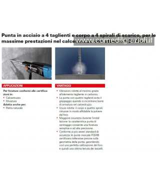 Descrizione: Punta fischer SDS Plus IV Quattric Punta in acciaio a 4 taglienti e corpo a 4 spirali di scarico