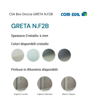 La doccia “Greta N.f2b” è una scelta ideale per chi cerca un ottimo compromesso tra design e funzionalità, offrendo una soluzione di qualità a un prezzo conveniente. Con CSA box doccia, potrete creare un ambiente di doccia accogliente e raffinato nel vostro bagno, che vi regalerà piacevoli momenti di relax e benessere.