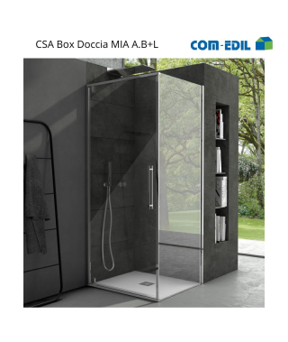 C.S.A. BOX DOCCIA ALLUMINIO MIA A.B+L ANGOLO 1 ANTA FISSA + 1 ANTA BATTENTE H200cm sp.6mm