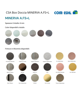 C.S.A. BOX DOCCIA ALLUMINIO MINERVA A.FS+L ANGOLO 1 ANTA SCORREVOLE + 1 ANTA FISSA H200cm sp.6mm
