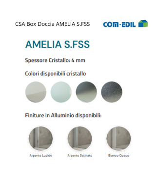 Il prezzo si riferisce al modello AMELIA S.FSS H140 cm L146/152 cm con vetro trasparente e finitura in alluminio colore argento satinato.