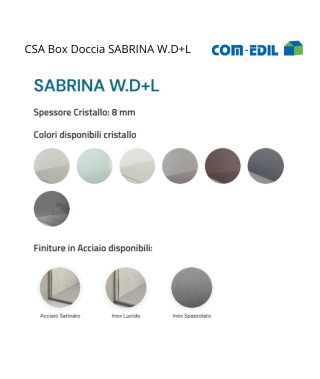 In sintesi, il box doccia walk-in “Sabrina W.D+L” rappresenta un’ottima combinazione di funzionalità e design. Perfetto per chi cerca un’esperienza di doccia comoda e raffinata, senza rinunciare all’eleganza del proprio bagno. Con materiali di alta qualità, varietà di scelta nei vetri e profili, questo box doccia è una scelta di alto livello per arricchire il bagno con stile e comfort. Scegli il box doccia walk-in “Sabrina W.D+L” e regalati momenti di benessere e lusso nel tuo bagno.