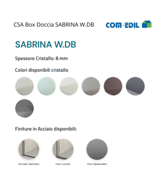 Il box doccia walk-In “Sabrina W.DB” fa parte della prestigiosa linea acciaio di CSA box doccia. Questo raffinato modello rappresenta una scelta ideale per arricchire il vostro bagno con uno stile elegante e senza tempo. Il box doccia walk-In “Sabrina W.DB” si distingue per la sua configurazione che mette in risalto il grande cristallo, che è il vero protagonista di questo modello.