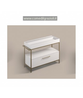 XILON MOBILE DA BAGNO ROAD CASSETTO BIANCO OPACO LAVABO BACINO UNICO STRUTTURA GOLD 120/127 x 46 CM