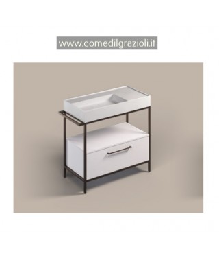XILON MOBILE DA BAGNO ROAD LAVABO, CONTENITORE BIANCO VERTICAL, LAVABO SX, STRUTTURA BRONZO CM 90+7X46X88