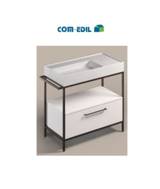 Struttura: reversibile Dx-Sx, lavabo in Ocritech, modulo contenitore con ante e ripiano interno, maniglie coordinate alla finitura della struttura, disponibile anche con apertura push to open. Dimensioni: 90+7x46x88 cm Finitura contenitore: Bianco opaco Finitura struttura: nero
